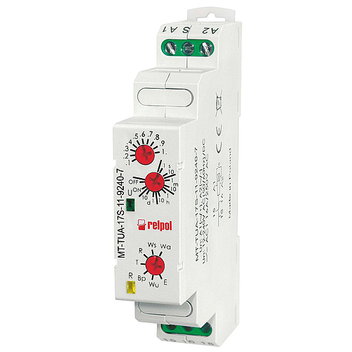 Реле за време тип RPC-1MB / MT-TUB/, мултифункционално, седем времеви функции, осем времеви интервала в диапазона 1s -10d, 1C/O, 16А, Un 12-240V AC/DC, за директен монтаж на DIN шина.